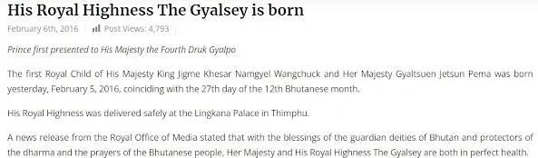 birth of HRH Gyalsey in the same year as Guru RInpoche who is closely connected with Bhutan makes his Highness’s birth very significant. ii.